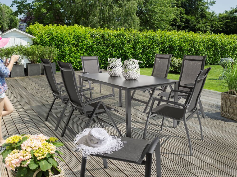 - Extra lehká hliníková konstrukce v elegantní antracitové barvě – pevná, stabilní a zároveň snadno přenositelná.