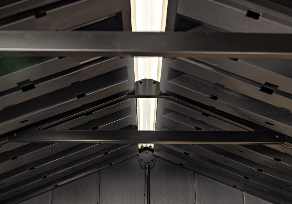 S jeho dvojitými stěnami a možností flexibilního sestavení, APEX 11x7,5 se může přizpůsobit jakémukoli prostoru. Stejně tak umístění okna a dveří je možné uzpůsobit. Díky širokým dvojitým dveřím a pevné designové střeše se stává ideálním úkrytem pro širokou škálu zahradního náčiní, nábytku a sekaček. Jeho vysoce odolná podlaha, schopná unést až 150 kg na metr čtvereční, poskytuje spolehlivou základnu pro Vaše potřeby.