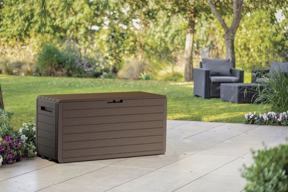 Jeho struktura v imitaci dřeva se skvěle hodí do každé zahrady či terasy.