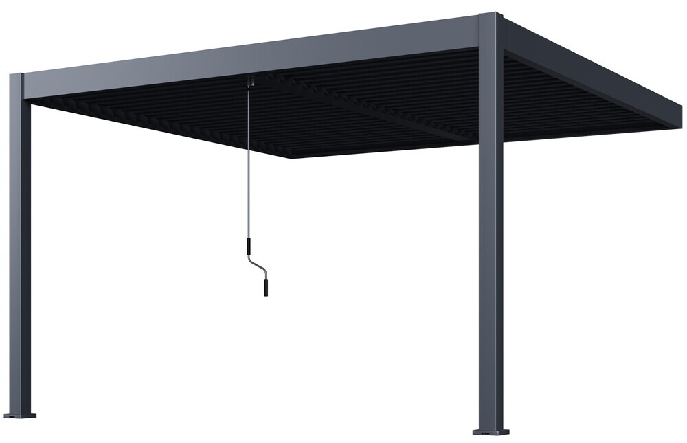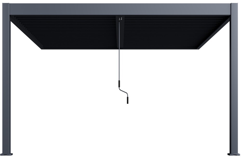 Lamely lze ovládat jednoduše manuálně pomocí kličky. Ta je navržena tak, abyste lamely mohli snadno otočit do požadované polohy a aby při otáčení lamel nedocházelo k poškrábání konstrukce pergoly. Zároveň je klička na konstrukci umístěna tak, aby při doplnění pergoly o zástěny či panely nebránila ve snadné manipulaci s těmito doplňky. Kličku můžete jednoduše sundat.
