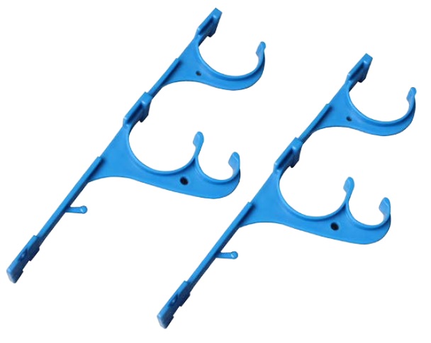 Držák teleskopické tyče pro jednoduché uskladnění příslušenství na čištění bazénu. Barva modrá.