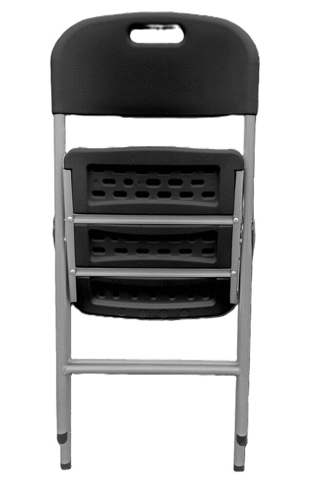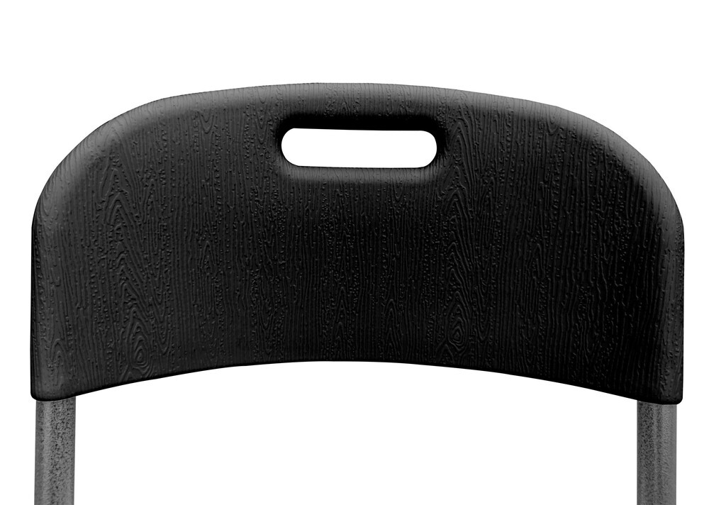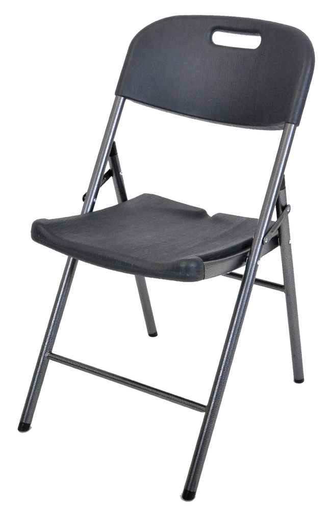 Skládací křeslo z velice pevného materiálu HDPE s ocelovou konstrukcí.