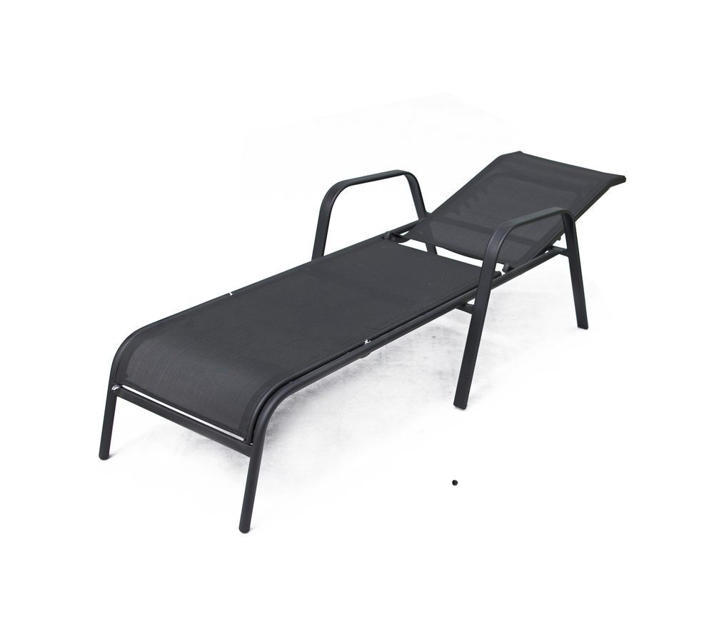 Polohovací lehátko se stabilní kovovou kostrou. Sedák a opěrná plocha je z textilie.