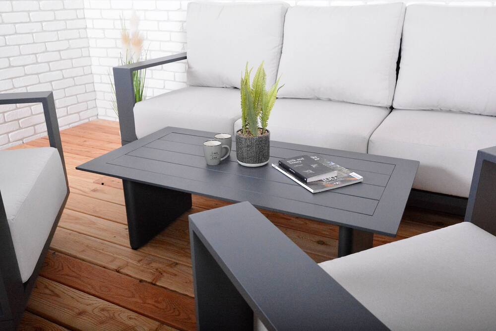Luxusní hliníková souprava v grafitovém provedení. Moderní souprava, která skvěle zapadne do každého exteriéru či interiéru.