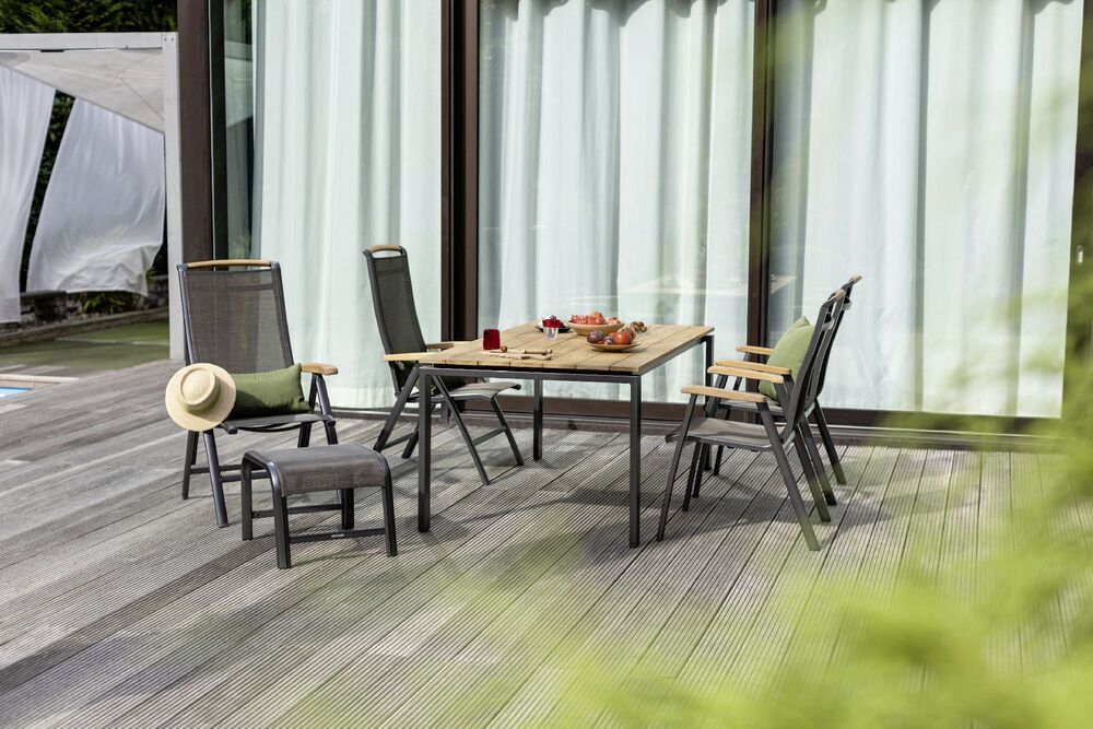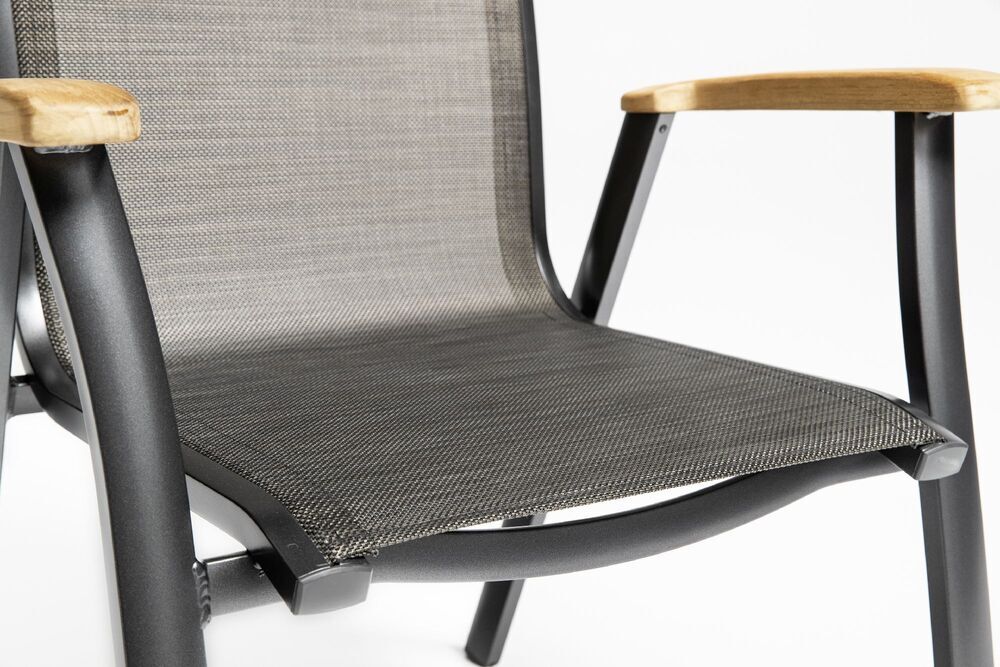 Křeslo MEMPHIS zaujme na první pohled svým přirozeným a harmonickým vzhledem. Teakové prvky s certifikací FSC® na područkách a opěradle vytvářejí příjemný kontrast s odstínem venkovní tkaniny, která je prodyšná, rychleschnoucí a odolná vůči povětrnostním vlivům. Díky tomu zůstává křeslo po celý rok krásné a funkční bez nutnosti složité údržby.