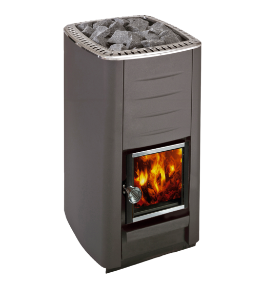 Kamna jsou vybavena skleněnými dvířky, díky kterým můžete vidět plápolající oheň umocňující atmosféru během saunování.