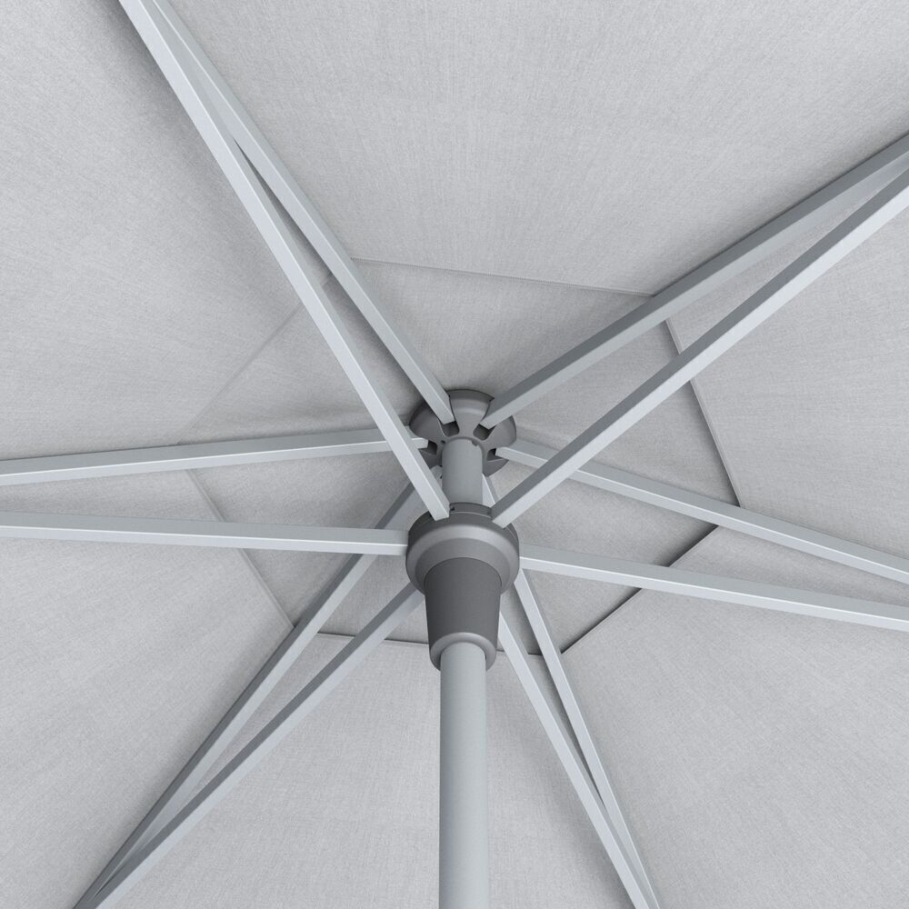 Potah je vyroben z vysoce kvalitního polyesteru (220 g/m²) s PU povrchovou úpravou, která zvyšuje odolnost proti vodě, špíně a opotřebení. Díky tomu je slunečník voděodolný a snadno udržovatelný, přičemž si zachovává dlouhou životnost i při častém používání. Větrací otvor v horní části potahu zajišťuje cirkulaci vzduchu a stabilitu při mírném větru.