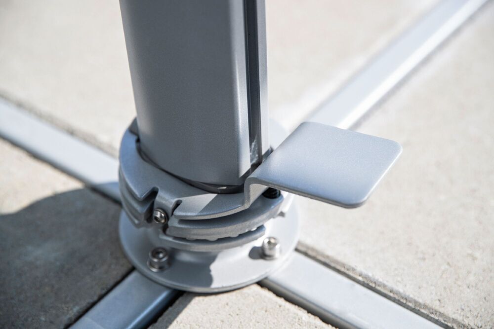 Díky praktickému pedálu lze slunečník otáčet o 360°, což umožňuje přesné nasměrování stínu bez nutnosti přesouvání celé konstrukce. Nastavitelný mechanismus umožňuje také snadné vertikální naklápění, takže se dokonale přizpůsobí poloze slunce v průběhu dne.