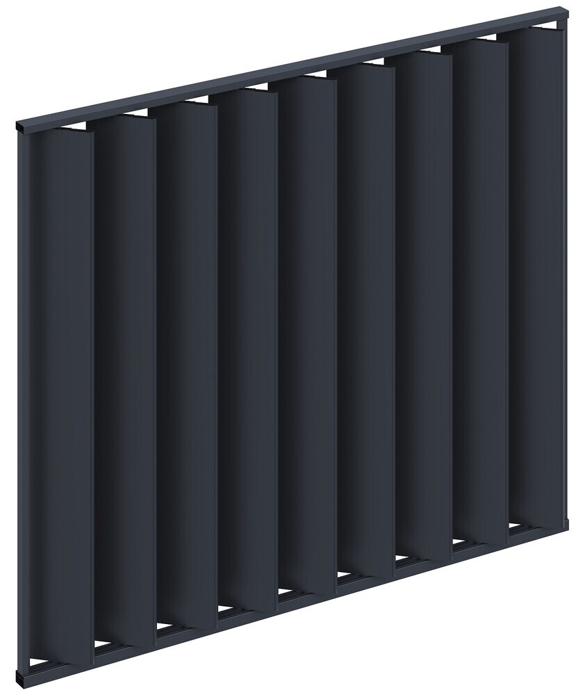 Velmi pevná a stabilní konstrukce a lamely v antracitové barvě RAL 7016. Stěna je vyrobena z vysoce kvalitního hliníku, který je ošetřen práškovou barvou, což zaručuje odolnost vůči povětrnostním vlivům.