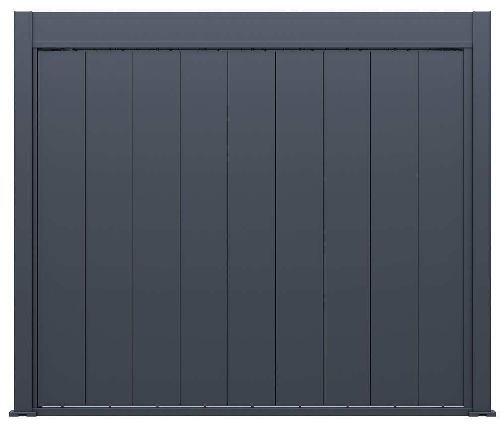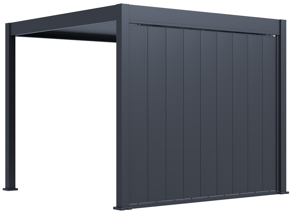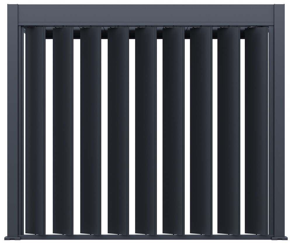Pro maximální využití bioklimatických pergol nabízíme také příslušenství v podobě stěny s vertikálními sklápěcími lamelami pro zastínění bioklimatické pergoly a získání většího soukromí.
