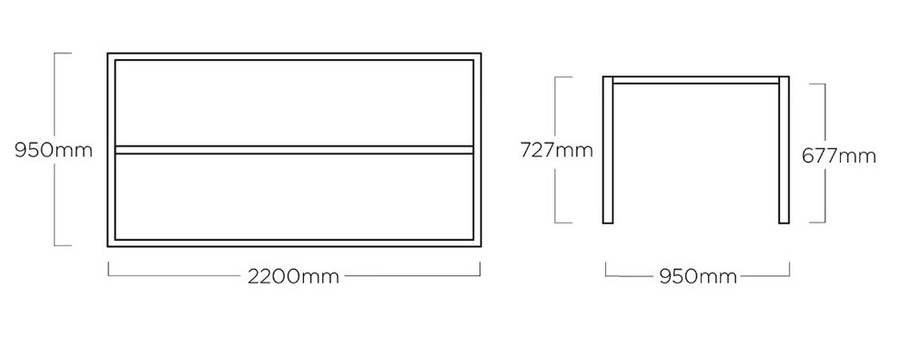 Rozměry: 220 × 95 × 73 cm (výška spodního okraje 68 cm)