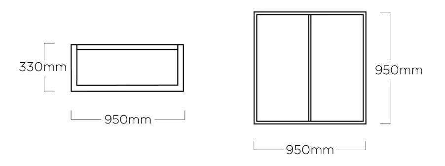 Rozměry: 95 × 95 × 33 cm (výška spodního okraje 31 cm)